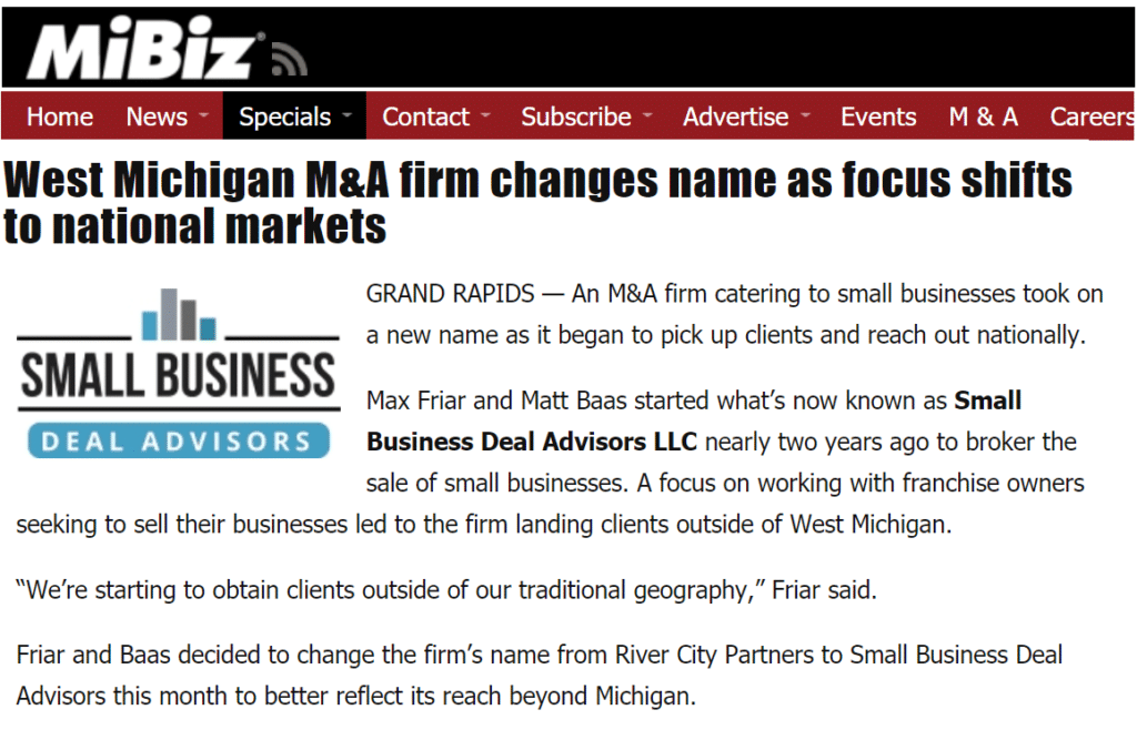River City Partners is now Small Business Deal Advisors Read More »