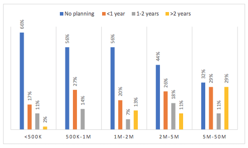 The chart above displays how much time owners spend planning for their exit. As you can see, many owners spend no time or less than 1 year preparing for their transition. This does not give time to make the appropriate moves to improve your business valuation. Source: IBBA Market Pulse