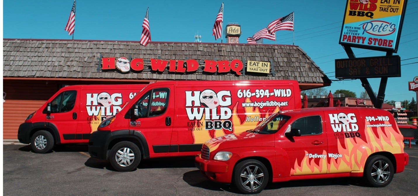 Hog Wild Barbecue is a fast-casual barbecue caterer and restaurant located in Holland, Michigan, locally owned and operated since it was established in 2006. Hog Wild is known for its meticulously smoked meats and unique recipes for sauces, rubs, and side dishes. Hog Wild is a community favorite that has been voted the #1 BBQ restaurant for the last ten years in the Holland Sentinel newspaper.